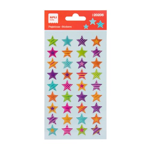 APLI Kids 20206-1 Feuille de 36 stickers étoiles pailletées - autocollants enfants pour loisirs créatifs, décoration cahiers et scrapbooking
