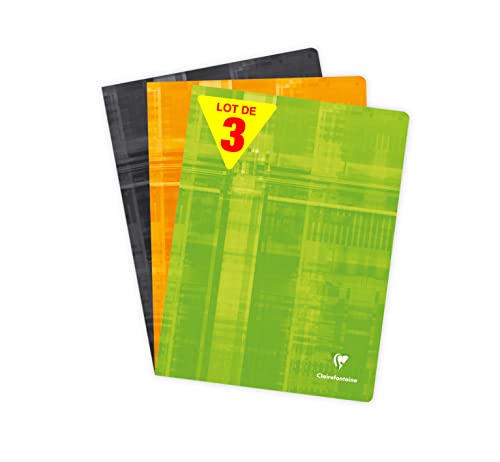 Clairefontaine 633662AMZC Lot de 3 Cahiers Agrafés - 24x32 cm - 96 Pages Petits Carreaux - Papier Blanc 90 g - Couverture Carte Pelliculée Couleurs Aléatoires