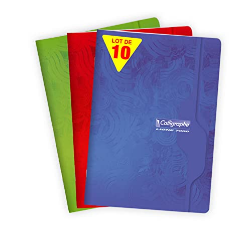 Calligraphe 7103C Lot de 10 Cahiers Agrafés (une Marque de Clairefontaine) - 17x22 cm - 96 Pages Grands Carreaux - Papier Blanc 70 g - Couverture Carte Offset - Couleurs Aléatoires
