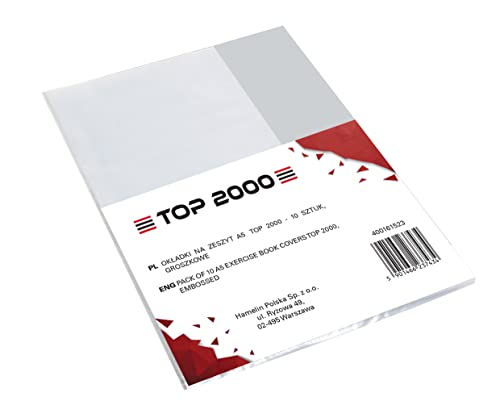 Lot de 10 protège-cahiers format A5, transparents, grainés, en polypropylène recyclable, 0,09 mm, extra résistants. TOP-2000