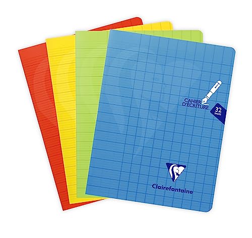 Clairefontaine 303796AMZC Lot de 5 Cahiers d'Écriture Mimesys - 17x22 cm - 32 Pages Grands Carreaux 3 mm Agrandis 12/12 - Papier Blanc 90 g - Couverture Polypro - Couleurs Aléatoires
