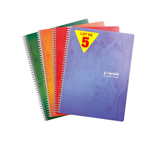 Calligraphe 403Cpack Lot de 5 Cahiers à Spirale (une Marque de Clairefontaine) - 17x22 cm - 180 Pages Grands Carreaux - Papier Blanc 70 g - Couverture Carte Recyclée Vernie - Couleurs Aléatoires