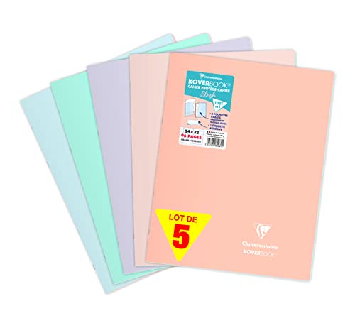 Clairefontaine 981481AMZC Lot de 5 Cahiers Agrafés Koverbook Blush - 24x32 cm - 96 Pages Grands Carreaux - Papier Blanc 90 g - Couverture Polypro Opaque Couleurs Aléatoires