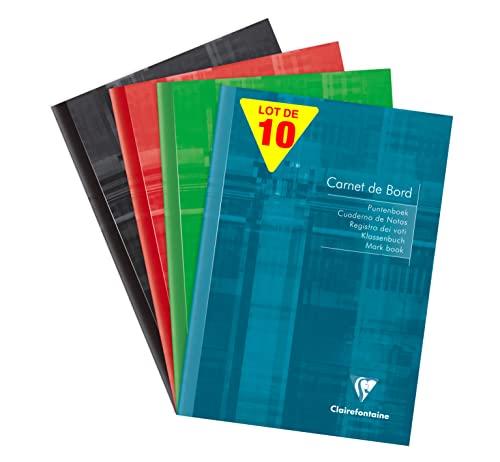 Clairefontaine 3689Cpack Lot de 10 Cahiers de Bord Agrafés - A5 14,8x21 cm - 40 Pages avec Marges Détachables - Papier Registre Vert 110 g - Couverture Carte Pelliculée - Couleurs Aléatoires