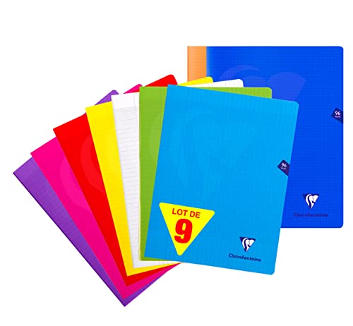 Clairefontaine 323361AMZC Lot de 9 Cahiers Mimesys - 24x32 cm - 96 Pages 90 g : 7 en Grands Carreaux (Bleu, Rouge, Jaune, Vert, Violet, Rose et Incolore) + 2 en Petits Carreaux (Bleu Marine et Orange)