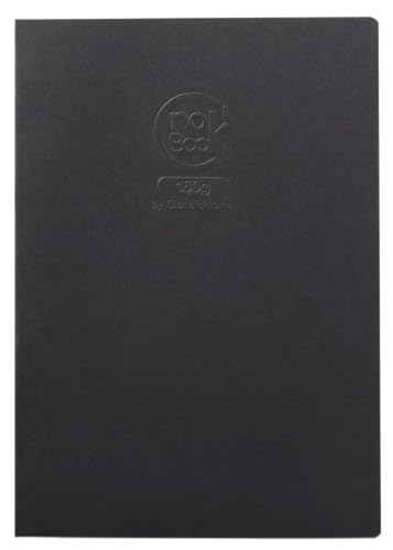 Clairefontaine 60362Cpack - Cahier Piqué Crok'Book - 20 Feuilles Papier Dessin Blanc A4 21x29,7 cm 160g - Format Portrait - Couverture Noire - Paquet de 10 Cahiers
