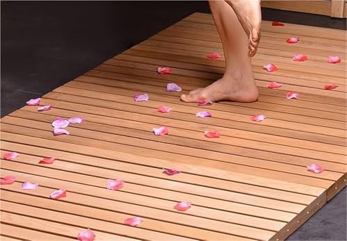 Tapis de Bain antidérapant en caillebotis de Bois, rectangulaire, 30, 40, 50, 60, 70, 80, 90, 100, 110, 120 cm, pour Balcon, Spa, Sauna, Salle de Bain, Douche(70x90cm/28x35in)