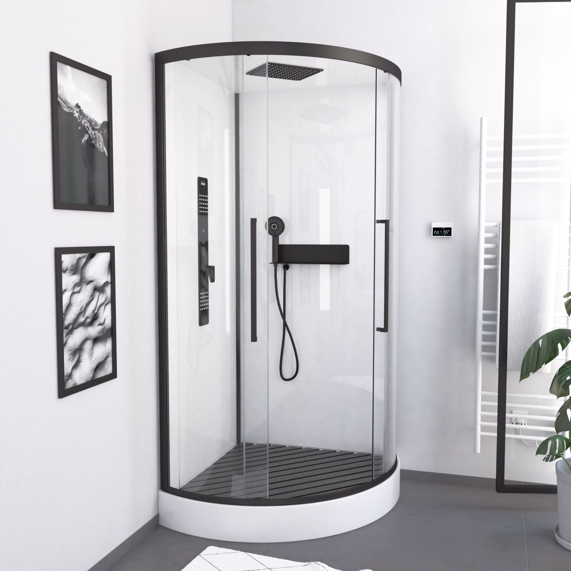 Caillebotis en Bois Composite Gris pour Cabine 1/4 de cercle - Dimensions 80,4 x 80,4 cm