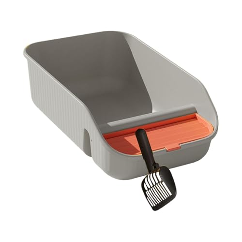 Fenteer Bac à Litière Maison de Toilette Caisse Ouverte Toilettes pour Chat avec Bords surélevés Anti-éclaboussures Adapté pour Les Grands Chats et Chatons, Gris