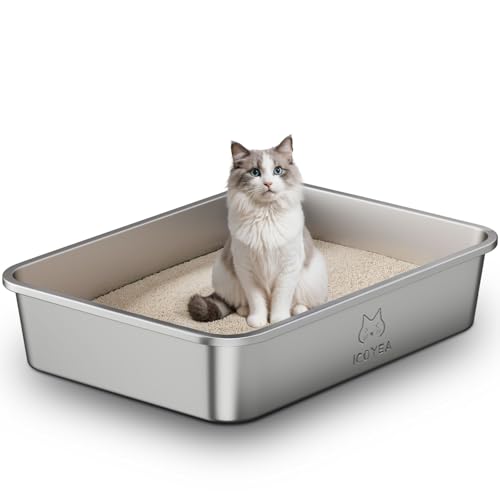 Bac Litiere pour Chat en INOX, Bac à Litière pour Grands Chats, Chatons et Lapins, Caisse Chat Litiere XXL, Litiere Toilette pour Maine Coon, Anti-Adhérent, Anti-Odeurs, Facile à Nettoyer