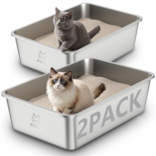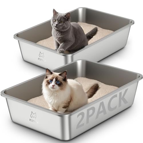Lot de 2 Bacs Bac Litiere pour Chat en Inox, à Litière pour Grands Chats, Chatons et Lapin, Caisse Chat Litiere XXL, Litiere Toilette pour Maine Coon, Anti-Adhérent, Anti-Odeurs (Lot de 2, 50*35*15cm)