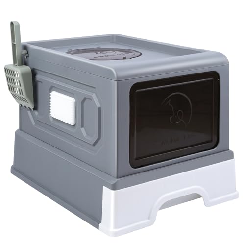 Caisse litiere pour Chat,Bac a litiere pour Chat,Litieres fermée Pours Chats,Anti-Fuite, Pours Chats Adultes, Chatons,Ouverture en Haut(36x45.5x32 cm,Gris)