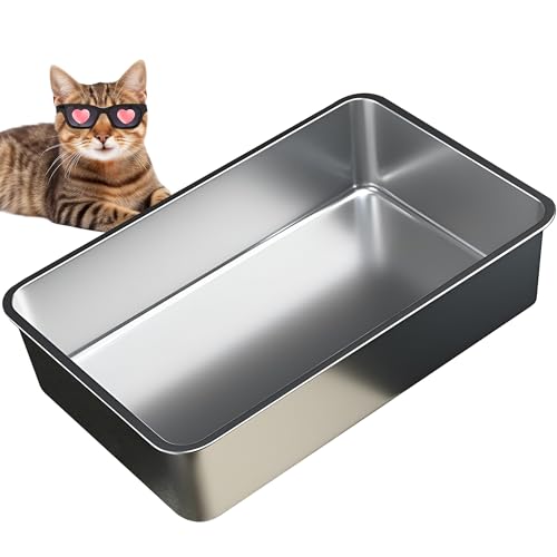 Bac Litiere pour Chat en INOX, Bac à Litière pour Grands Chats, Chatons et Lapins, Caisse Chats Litiere, Litiere Toilette pour Chat, Anti-Adhérent, Anti-Odeurs, Facile à Nettoyer