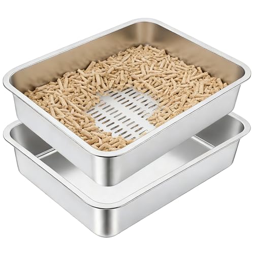 Lot de 2 Bacs Bac Litiere pour Chat en Inox, à Litière pour Grands Chats, Chatons et Lapin, Caisse Chat Litiere XXL, Litiere Toilette pour Maine Coon, Anti-Adhérent, Anti-Odeurs (Lot de 2, 45*35*15cm)
