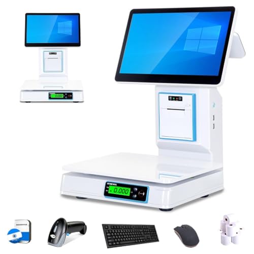 Système De Point Vente avec Balance Intégrée Caisse Enregistreuse Écran Tactile 15.6" for Supermarché Caisse Vente Au Détail avec Imprimante Reçus 66LB/30kg Maximum 8Go RAM 128Go SSD(Dualscreen)