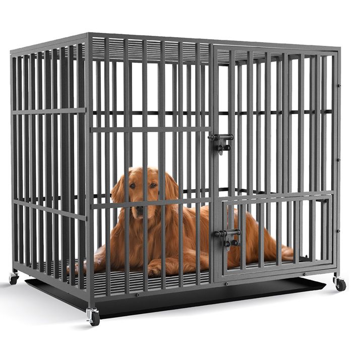 Caisse pour chien robuste L XL XXL avec 4 roues verrouillables, 3 portes et plateau amovible, chenil en métal pour animaux de compagnie, parc