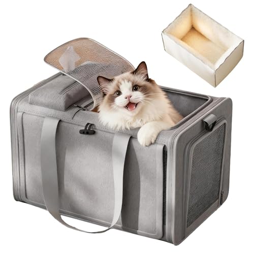 Grand Sac de Transport pour Chat, Doublure intérieure Amovible, Sac de Transport pour Animaux de Compagnie, 16 Pouces, côtés Souples avec Maille de Ventilation, Caisse de Voyage Portable pour Animaux