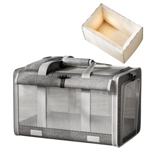 Gardner Pet Sac Transport pour Chat Chien Extensible, Grand Caisse de Transport Chat Respirant et Pliable, Cage Transport Chat pour Voyage en Avion/Train/Voiture - M/Gris