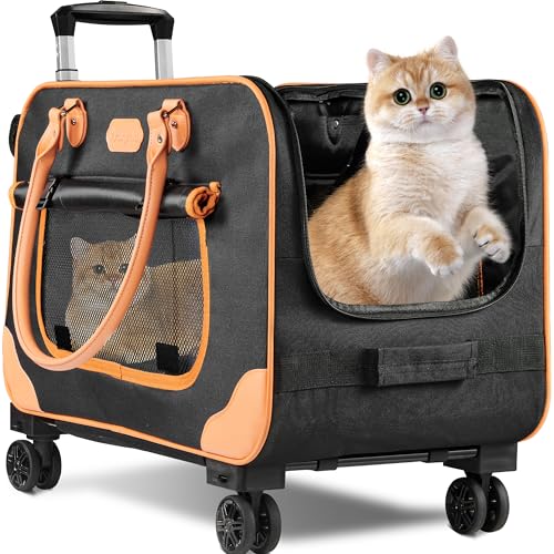 Grand Sac de Transport à roulettes pour Chat - 62,2 x 35,1 x 39,1 cm - pour Grands Chats et Petits Chiens pesant jusqu'à 17,2 kg, idéal pour Les Voyages, la Marche et Le Camping (ne Convient Pas pour