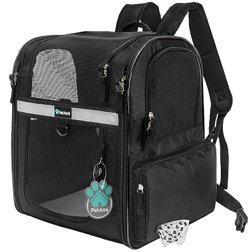 PetAmi Sac à dos de transport ventilé pour petit et grand chat, animal de compagnie, chiots, sac à dos de randonnée ventilé pour animal domestique, sac de voyage approuvé par les compagnies aériennes,
