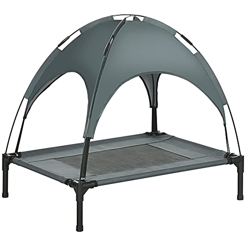 PawHut Lit pour Chien Chat sur Pieds Grand Confort Velum Anti-UV Tissu Oxford Micro-perforé + Parasol + Sac de Transport Inclus Gris Noir
