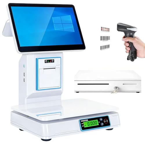 GJBMXSM Caisse Enregistreuse avec Balance Intégrée, écran Tactile 15.6", Windows 10, Imprimante Thermique Reçus 58 Mm Intégrée, Tiroir-Caisse Et Lecteur De Codes-Barres Inclus Dualscreen