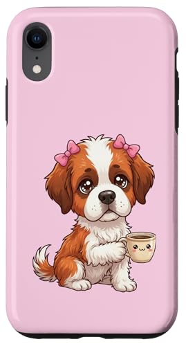 Chiot Saint Bernard drôle avec Tasse et Caisse enregistreuse Coque pour iPhone XR