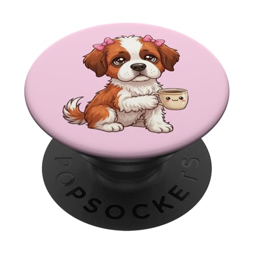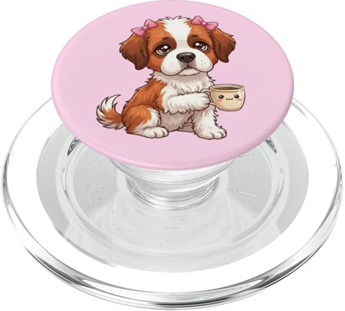Chiot Saint Bernard drôle avec Tasse et Caisse enregistreuse PopSockets PopGrip Adhésif