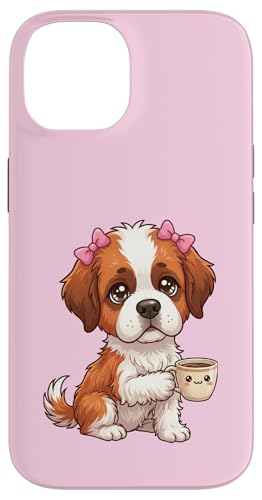 Chiot Saint Bernard drôle avec Tasse et Caisse enregistreuse Coque pour iPhone 14 Plus
