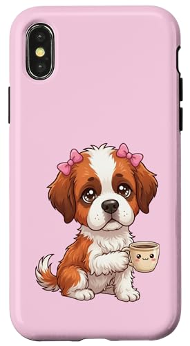 Chiot Saint Bernard drôle avec Tasse et Caisse enregistreuse Coque pour iPhone X/XS