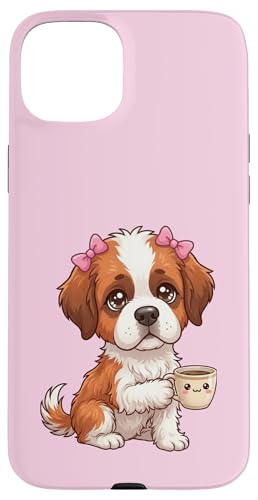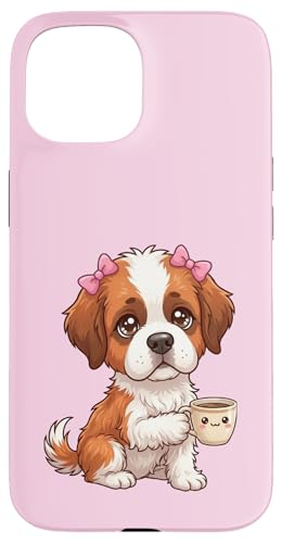 Chiot Saint Bernard drôle avec Tasse et Caisse enregistreuse Coque pour iPhone 15 Plus