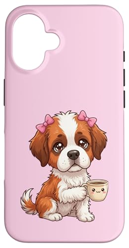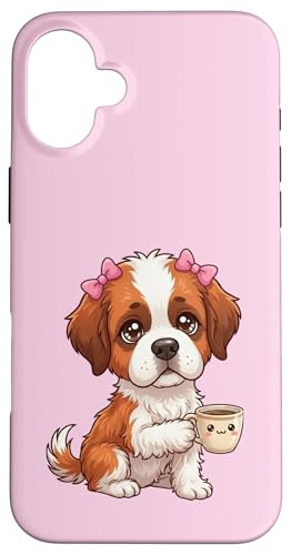 Chiot Saint Bernard drôle avec Tasse et Caisse enregistreuse Coque pour iPhone 16 Plus