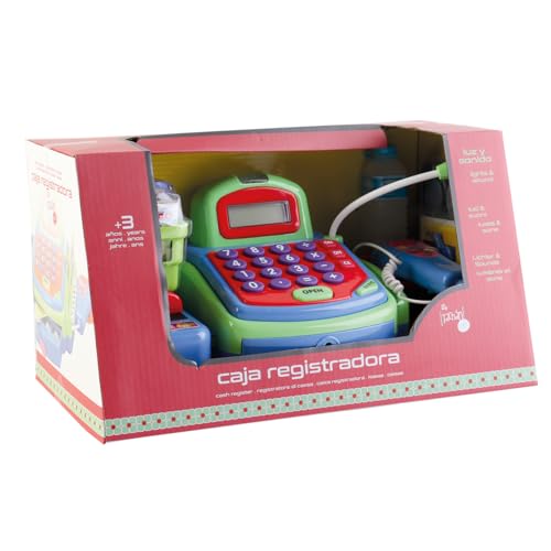 TACHAN CPA Toy Group 746T00703 Caisse enregistreuse Bleue Calculatrice Real Microphone Amplificateur Panier avec Aliments, pièces de Monnaie et Billets