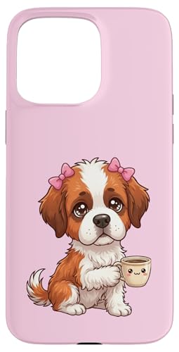 Chiot Saint Bernard drôle avec Tasse et Caisse enregistreuse Coque pour iPhone 15 Pro Max