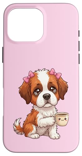 Chiot Saint Bernard drôle avec Tasse et Caisse enregistreuse Coque pour iPhone 16 Pro Max