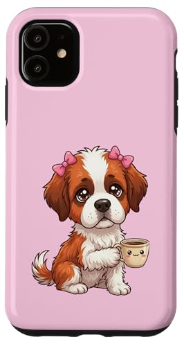 Chiot Saint Bernard drôle avec Tasse et Caisse enregistreuse Coque pour iPhone 11