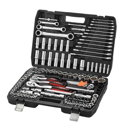 Caisse Outils Complete 198 Pièces jeu doutils à Main jeu de Tournevis avec Clé à Cliquet Réparation Automobile