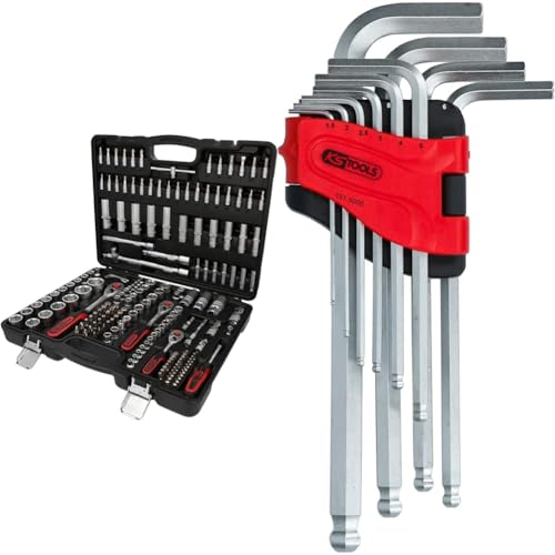 KS TOOLS 917.0779 - Caisse à Outils Complète en Coffret Douille et Accessoires en 1/4", 3/8" et 1/2" & 151.5000 - Jeu de clés mâles coudées - 6 pans creux - Tête sphérique sur la partie longue