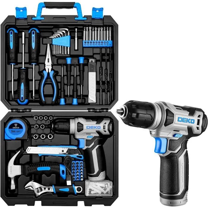 DEKO Caisse a Outil Avec Perceuse Visseuse Multifonction Sans Fil 8V, 126 Pièces Malette Outils complete, Ensemble d'Outils avec184