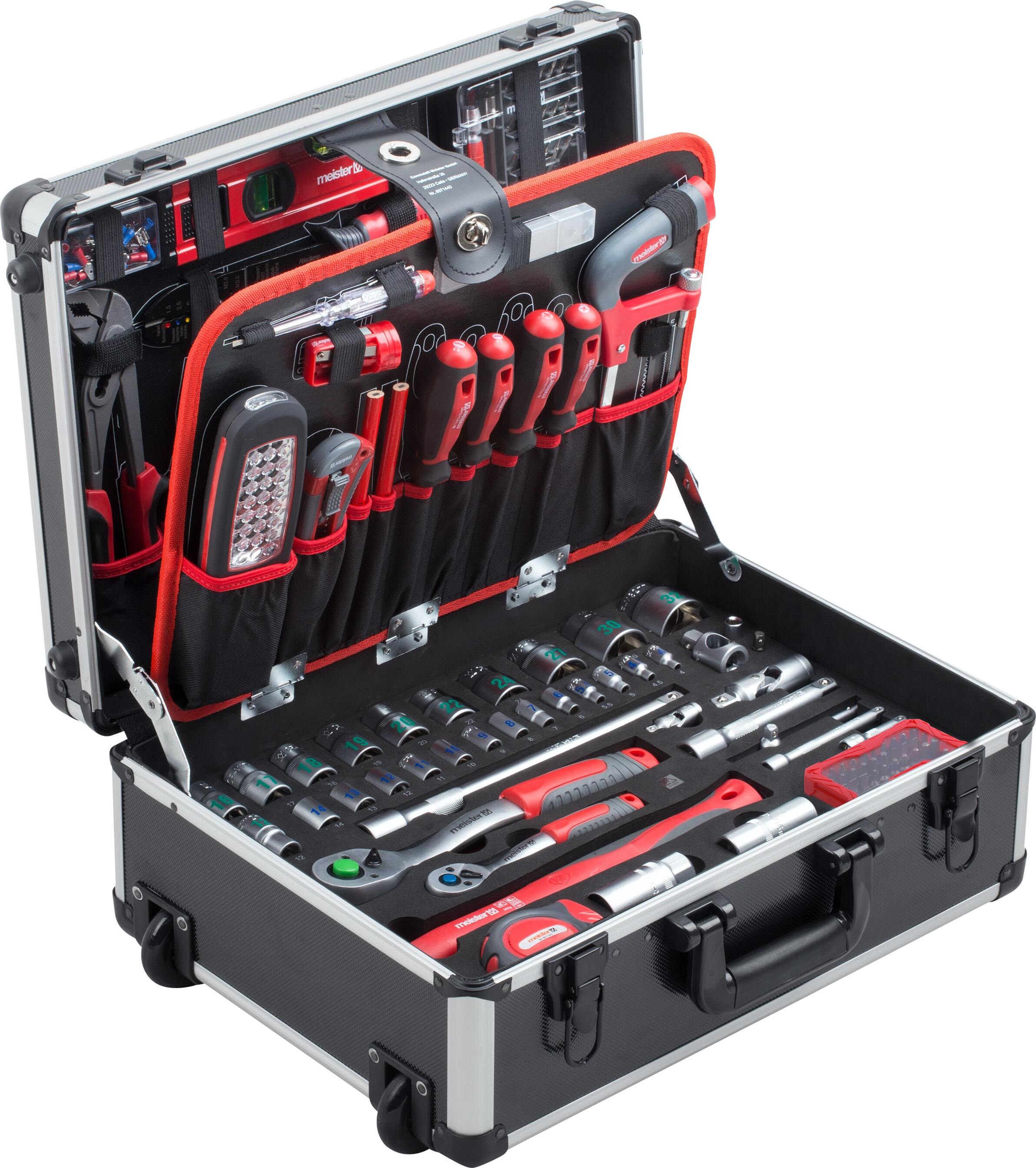 Meister Werkzeugrolley 156-teilig - Werkzeug-Set - Mit Rollen - Teleskophandgriff / Caisse à outils professionnelle remplie / Caisse à outils mobile sur roulettes / Caisse à outils complète avec outils