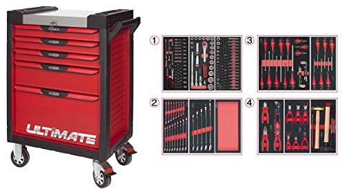 KS Tools - 809.7241 - Servante d'atelier complète ULTIMATE 7 tiroirs equipée de 241 outils - caisse à outils complète - couleur rouge - plateau inox -porte flacons