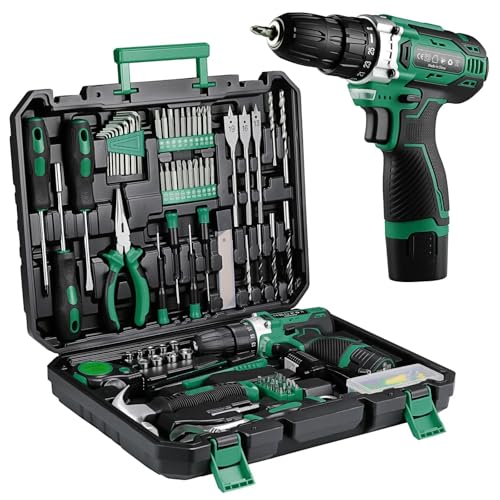 TLGREEN Caisse a Outil Perceuse à Percussion Sans fil 12V, Boîte à Outils 138 Pièces Malette Outils complete avec Perceusepour Réparation, Entretien et Travail pour Jardin, Bureau, Domicile