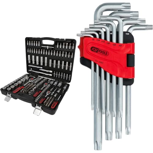 KS TOOLS 917.0779 - Caisse à Outils Complète en Coffret Douille et Accessoires & Kstools Jeu de clés mâles coudées torx longues kstools - 10 pièces - 151.4880