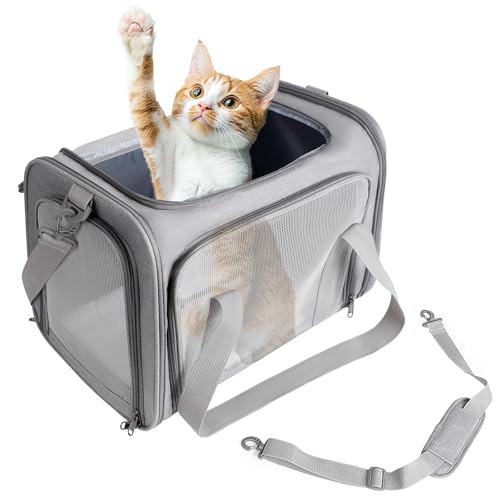 Pecute Sac de Transport pour Chat, Caisse de Transport Chat et Chien avec Coussin Doux, Sac Portable ou Sac à Bandoulière en Tissu pour Un Transport Confortable, Sac Pliable pour Les Voyages Avion