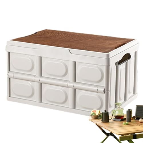 Boîte de rangement – Bac pliable pour coffre de voiture, récipient de rangement avec couvercle | Bac empilable de garage, étui utilitaire de jardin, sac de camping avec dessus en bois, caisse pliable
