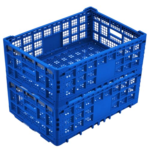 Crevyteg Caisse de rangement pliable 52L robuste avec couvercle – Empilable, pratique pour bureau, maison, jouets, vêtements, garage – Lot de 2 – 23,6 x 15,7 x 8,6 pouces, bleu – 2 PCS
