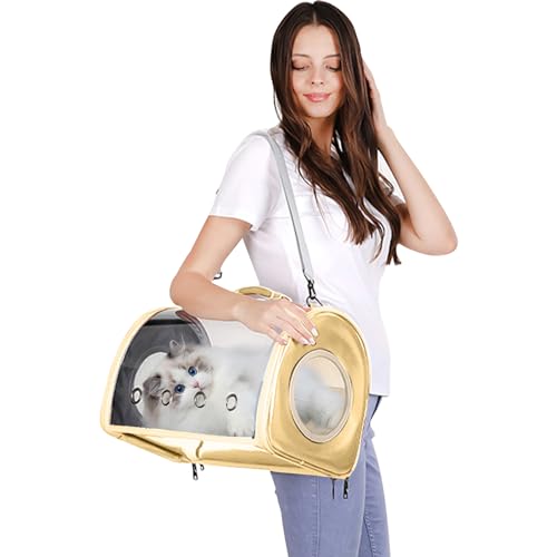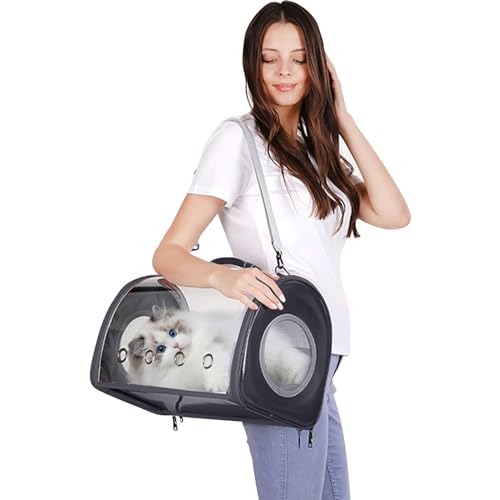 PETCUTE Sac Transport Chat Chien,Caisse de Transport Chat Portable avec Bandoulière Réglable,Transparent Sac de Transport d'animaux pour Chien Chat avec Maille Respirante pour Voyage en Avion/Train