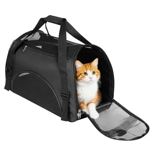 Pecute Sac de Transport pour Chat, Caisse de Transport Chat et Chien avec Coussin Doux, Sac Portable ou Sac à Bandoulière en Tissu pour Un Transport Confortable, Sac Pliable pour Les Voyages Avion