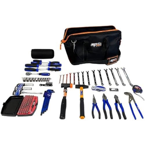 SP TOOLS SP-BAG1 - Sac À Outils Entièrement Équipé - 132 pièces - Porte outils, Tissu robuste et base imperméable moulée, bandoulière amovible et réglable - Caisses et sacs - Qualité professionnelle