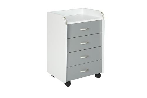 Inter Link - Caisson à roulettes avec tiroirs - Caisson de bureau sur pied - Armoire à roulettes Commode de bureau 4 Blanc et Gris - Printi